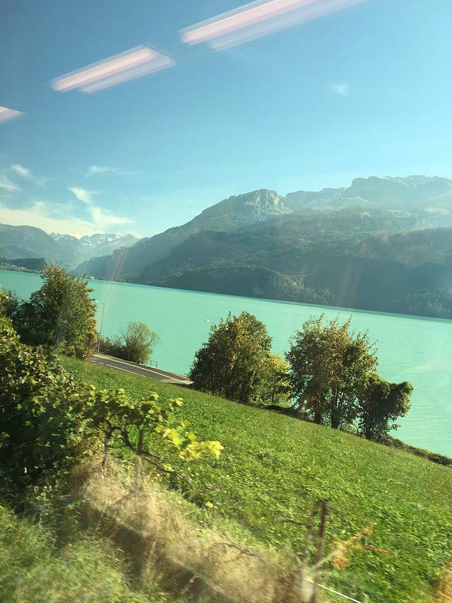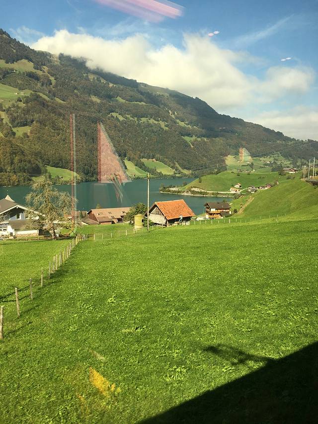看完雪山,下午乘坐金山口列车去瑞士的边境。这个列车真的值得一坐,速度不快周边风景特别好,穿越小镇,湖泊,山谷·········景色一级棒棒哒~! 特别是瑞士的房子,窗台上都放着鲜花,挺美的, 房子也都很有特色,温馨,舒适,恨不得在这住上一阵子···· (做列车一直在内心感受就没怎么拍照了)