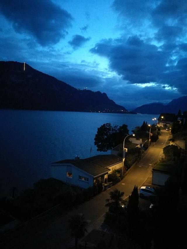 今晚的住宿是湖景房,很不错,打开落地窗就看到了琉森湖和瑞士风光。