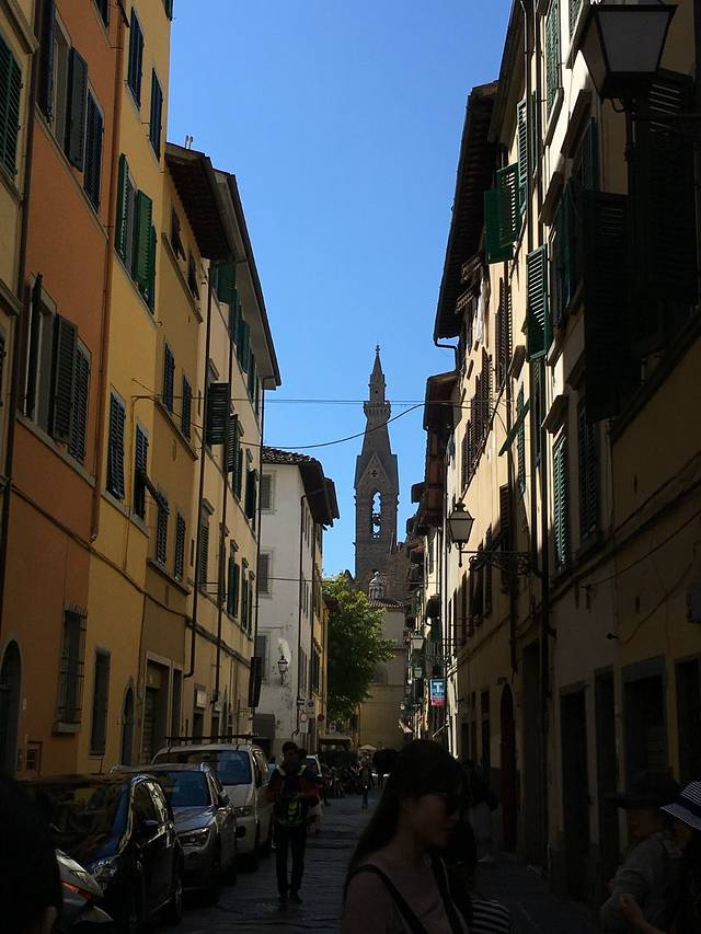 第一站:佛罗伦萨,它是文艺复兴的发源地,文艺复兴时期的大多数代表人物都曾聚集在这里。例如:达•芬奇、拉斐尔、米开朗基罗等等(文化知识薄弱•~•)。(百度:十三——十四世纪的诗人但丁、文学家彼德拉克和作家薄伽丘被称为文艺复兴运动的先驱(前三杰),而十六世纪的画家达•芬奇、建筑艺术大师米开朗琪罗和画家拉斐尔则被称为文艺复兴运动的后三杰,他们为佛罗伦萨留下了许多流芳千古的建筑、雕塑和壁画。)这里与我们城市不一样,没有高楼大厦,都是一些建成已久的房屋。