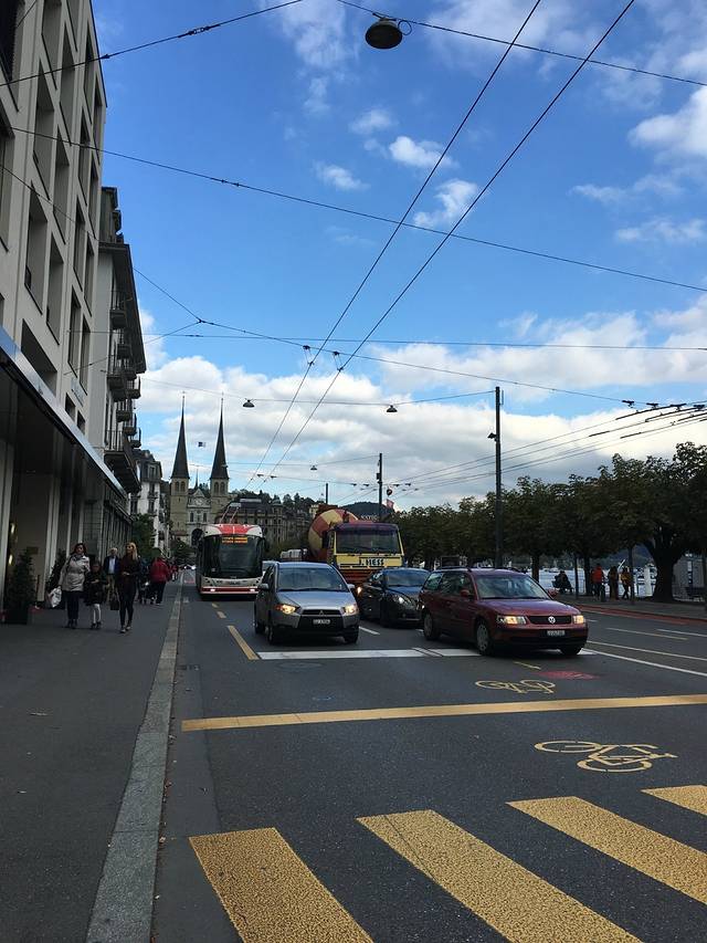 中途路过一个瑞士小镇,人们都很悠闲,在附近超市买了点吃,继续赶路前往卢塞恩。