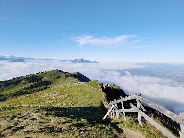 从山顶望下是瑞士的琉森湖,云层之下,雪山之上,不同的风光,不同的心情。