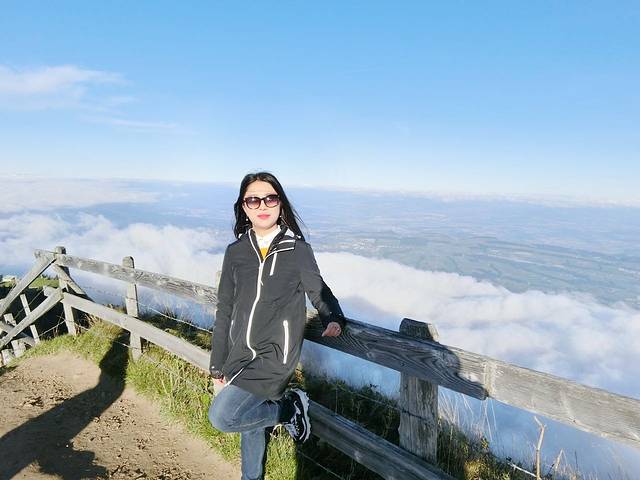 早上天气看起来阴沉沉的,慢慢走,慢慢穿过了云雾,一片晴朗。