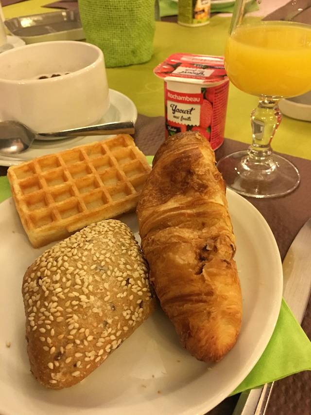 这顿早餐可以说棒棒哒了,来了一个星期每天基本上都是牛奶面包,最好吃的就是这个牛角面包,但是经常只有一个人一个的样子,中间这个芝麻的是硬邦邦的那种,有点吃不惯
