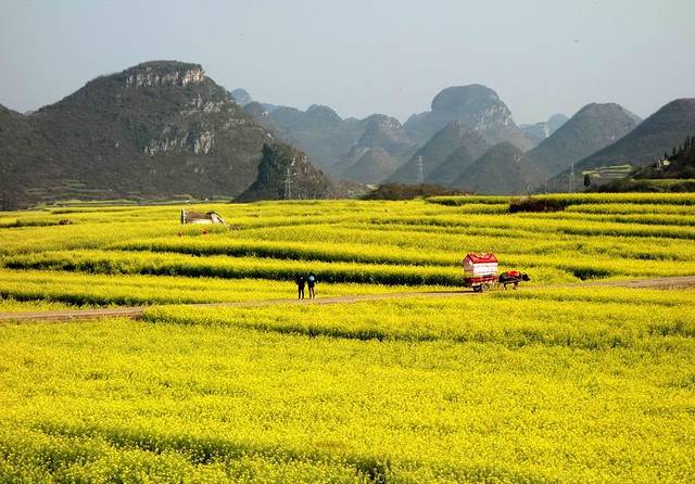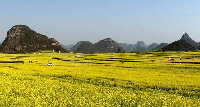 有人说,如果只能去一个地方看菜花,那么你一定要去罗平。那里的油菜花,不着杂色,天蓝蓝,地黄黄,花色袭人,花田如海,美的让人喘不过气来。我曾多次去江西婺源等地观赏油菜花,与罗平的油菜花相比,只能说是小儿科……