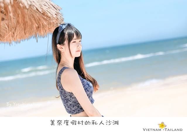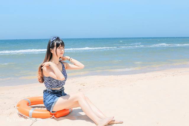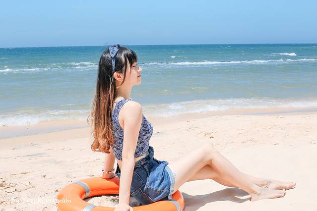 美奈沙滩:露脐背心+牛仔短裤,比较显身材。