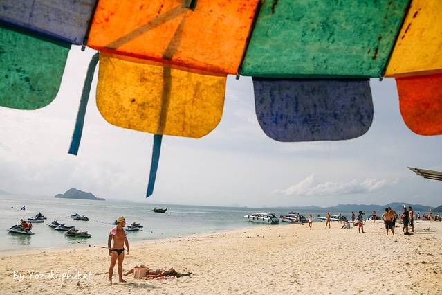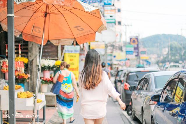 普吉岛略带湿润的空气中,有咸咸的海水味道,和水果的香气。走在每一条街上,眼前呈现的都是高饱和度色彩,冷不防的,就会有摩托车和突突车从身边呼啸而过。喜欢踩在细软洁白的沙粒中,跃入蓝绿色的安达曼海触摸彩色小鱼,坐在马达如雷声般轰鸣的突突车里转过每一道弯,在寺庙里躲雨也变得浪漫。
