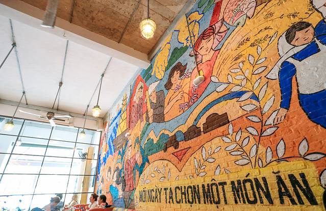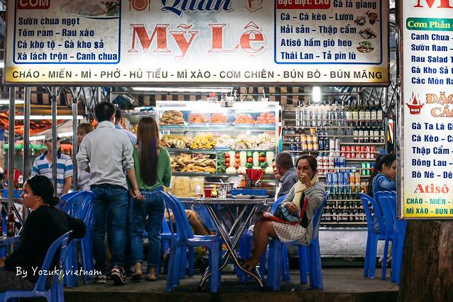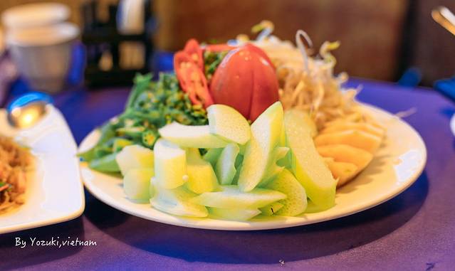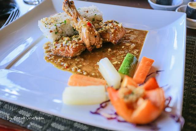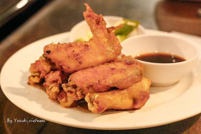 民宿的主人Jessi在邮件中推荐过一家店,而这家餐厅恰好也在我们的美食list里,Nha Hang Ngon,有着法式风情的越南餐厅。门口很多露天座位,四周就是厨房,想要吃烧烤之类的可以直接去点。我们点了一些越南菜和海鲜,终于吃到了想吃的鸡翅,非常满足。