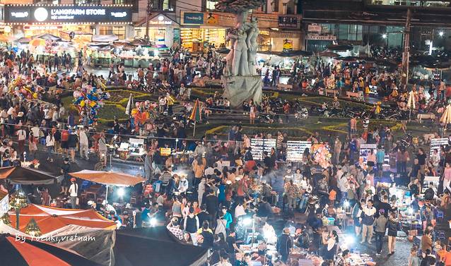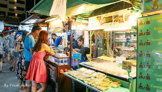 畅快淋漓地吃海鲜,喝啤酒,卸下所有的包袱,尽情享受普吉岛的夜。饭馆外面就是热闹的街道,小吃摊早已都支起蓬蓬摆了出来,五颜六色的顶棚把街道装点的很漂亮。可以吃到很多本地特色小吃、水果、果饮、炒冰淇淋,后悔海鲜吃的太撑啦。