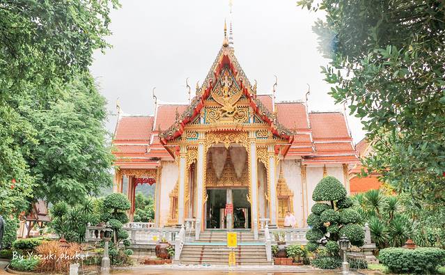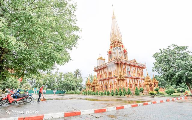 下午我们分成两拨人,一行人去了普吉镇上,我们去了位于查龙湾的查龙寺。普吉岛虽然为海岛,但在岛上藏匿了不少的寺院,只要有信徒在,哪里都会有寺庙。查龙寺,可是岛上最大的佛教寺院,可供游览的有主大殿、舍利塔、寺庙原址和老祖师庙,座座金碧辉煌。