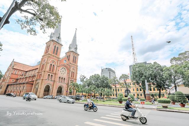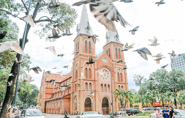 浪漫的越南人铸造了浪漫的国家,到了周末,教堂前总会有来拍婚纱的情侣们,绯红的脸上洋溢着甜蜜的喜悦,也会传递给身边的人。