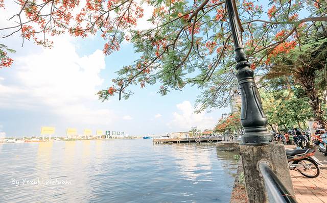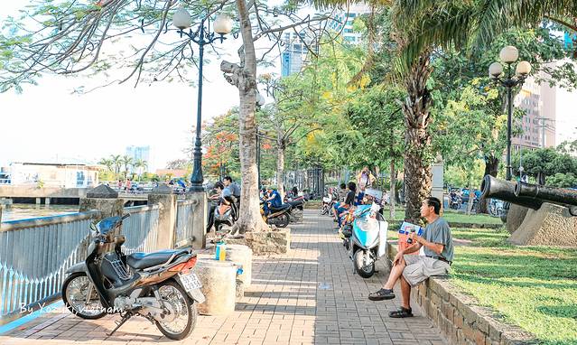 傍晚时分,可以在西贡河畔走走,西贡河的河宽不宽,对面的建筑风景看的很清楚,河水也挺清澈的。沿着河边有类似散步道的路,很多越南人把摩托车停在这里,坐在车座上望着河,发发呆。每个城市总有条生命之河,大叻有春香湖,而胡志明市就是西贡河了。