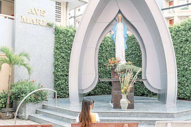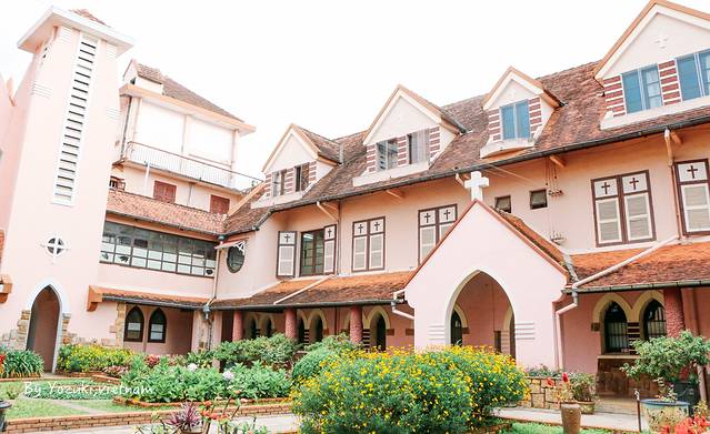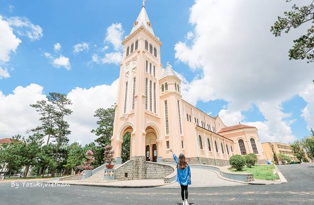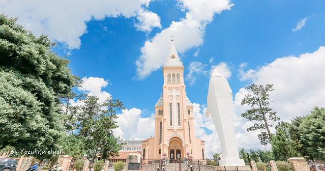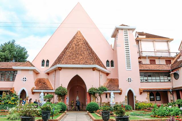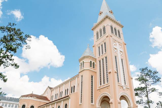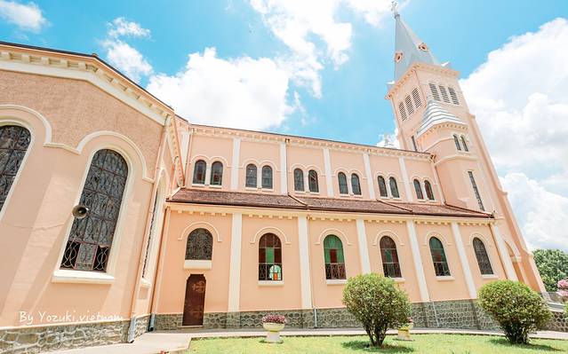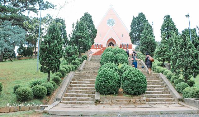 每一个城市都需要一座地标,在这小而清新的大叻之城,我找到了这座可以作为地标的天主教堂,就在酒店边上。平日不在弥撒的时间里,这里显得静谧,只有三三两两来拍照的人。遇到外国背包客询问教堂的门何时会开,我们一时也回答不上,非弥撒时间,是无法入内参观的。建筑是哥特式风格,于1931-1942年间建造,墙体颜色很和谐,高高的尖塔直冲云霄。它的玻璃窗产自同期的格勒诺布尔,当有强烈的阳光想要照进教堂,会被大大地削弱,教堂的墙壁上只会投射出淡淡的绯红色。每一处的细节都有它存在的意义。