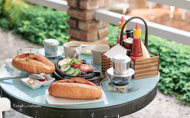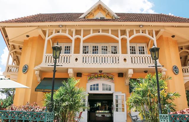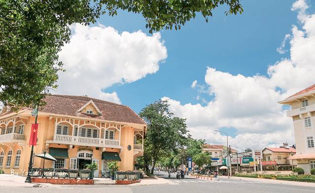 在快要昏昏欲睡的时候,司机喊着我们的酒店,匆匆拿起随身行李,跳下车,等整理好后就出来觅食了。大叻还到处都是这种明晃晃的亮黄色建筑呢,充满欧式风情,不管是自己住的房子还是餐厅、酒店,每一栋也都不相同。