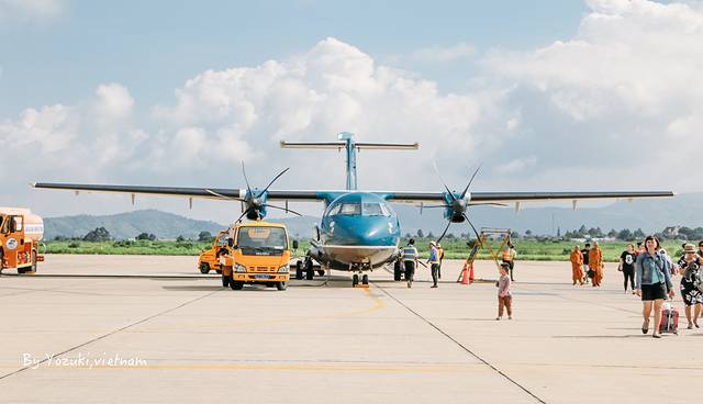 300+单程,飞行时间不过1小时不足,意外的是坐的越南航空的螺旋桨飞机!飞机很小,一排4个座位,飞机挺稳,不提供餐食,供水。