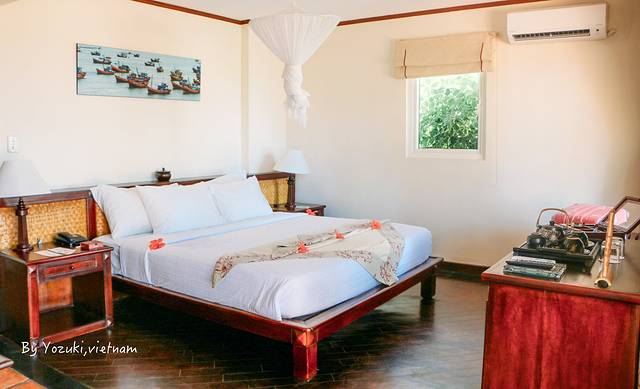 从里到外都很复古,房间里不设空调,只有老式五叶电扇,推开木窗,大叻色彩斑斓的小房子群就立刻跳入眼前,这样的景观房很喜欢!高高的床,旧式橱柜,都有着一股欧洲气息。酒店有一个法式餐厅,周围也有吃brunch的地方,步行可到天主教堂和疯屋子。