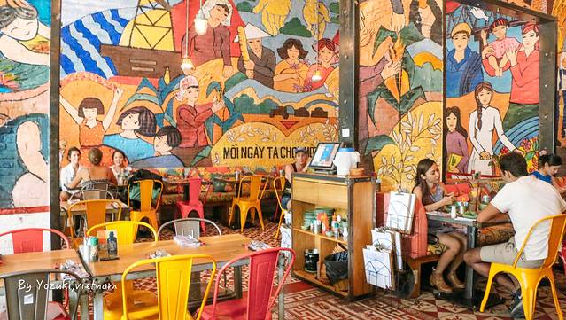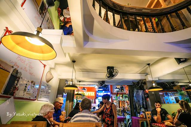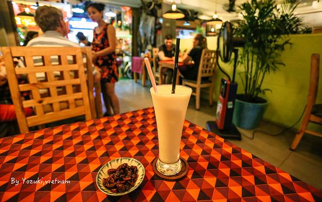 下午炎热的时候,最适合钻进一家咖啡馆里打发时间。这一间是设计师开的店,一层卖一些服装、本子和主人喜欢的杂物,走上二层,才是咖啡店。越南咖啡味道很赞,不甜不腻,柠檬苏打水非常解渴,在越南,喝的最多的当属水果shake和柠檬苏打了,烈日下消耗过快,水分很快就被蒸发啦。