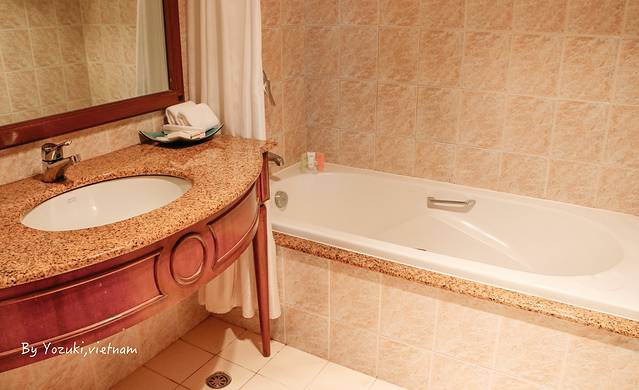 客房还蛮大的,暖黄色调,有观池景的阳台,设施配套还算齐全,好像没有牙刷牙膏,需自带,每日12点后会有服务员来打扫。只是豪华房和精致套房差不多,区别仅仅在于多了一个小沙发,但价钱差了不少。