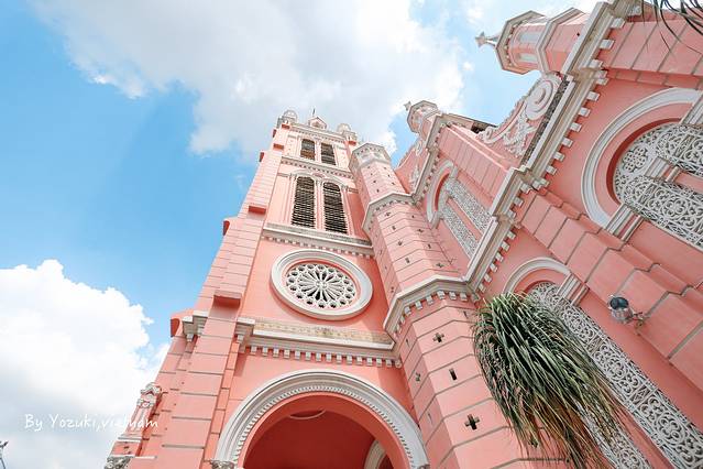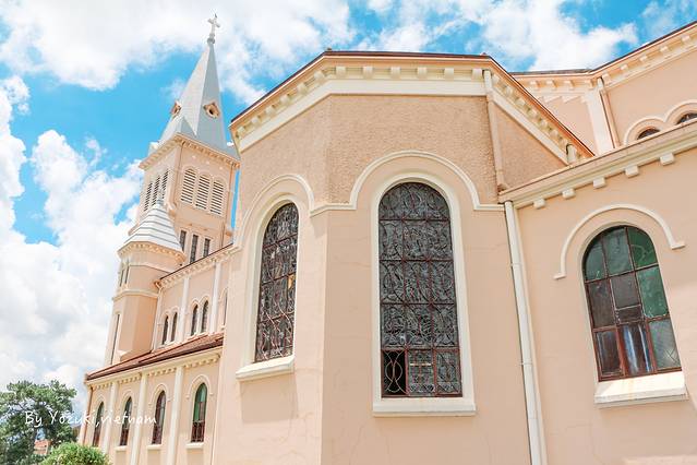 没想到胡志明市有那么少女心的教堂!很多攻略上都没有写到这个教堂,在微博上发现的。整个建筑都是粉色系,在这里拍照无论怎么拍都很好看!因为上午去的时候没有赶在弥撒时间,不能入内,只能通过窗户的栅栏往里张望。