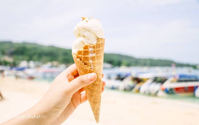 从推着小车车的当地人手里买了冰淇淋,香草味道的冰淇淋撒上花生粒,做工简单,味道也很纯粹,走在沙滩上,一会儿就融化了,难怪沙滩上总是会看见好多小蚂蚁。