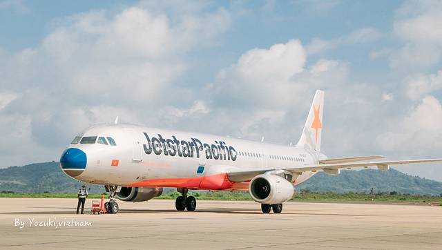 越南航空是小飞机,属于坐在最后一排,都能看见第一排人的后脑勺。童话里都是骗人的,并没有什么想象中身材姣好的空乘,只有一位身材魁梧的大叔,指示我们上下飞机,很神奇的是,从机尾上飞机的呢。小飞机开得挺稳,很快就到了大叻,旁边停着的是一辆Jetstarpacific飞机。