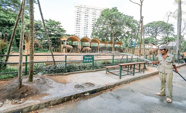 西贡草禽园,其实是动物园和植物园的合并体,本以为面积不大,但发现走一圈下来并不小,儿童游乐园、表演舞台、喷泉、草地、小卖部一个都不少。门口有导览车可以坐。动物还是挺多的,大象、河马、长劲鹿、鳄鱼都能看到,虽然数量都不多。下午去的原因,他们都懒洋洋的,有的躲在草棚里不肯出来见游客一面。