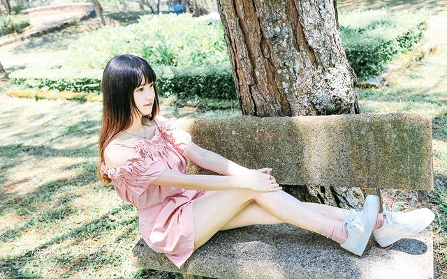 西贡草禽园:黄色连衣裙,也是糖果色系衣服,和绿色很搭配。