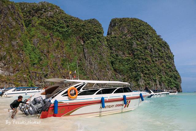 从本岛出发到pp岛大约1个多小时的船程,快艇的速度很快,会上下颠簸,遇到一点海浪,整个船颠得更厉害,坐在船尾的容易被水溅到,如果怕晕船坐在靠前比较好。