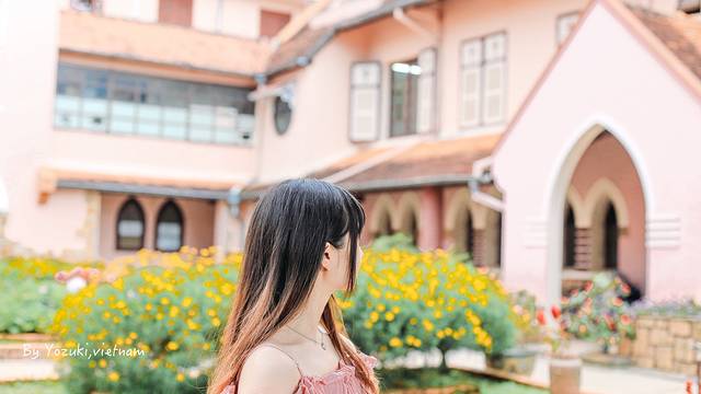 大叻:糖果系色调的衣服,自己穿的是粉红连体裤,在粉红修道院拍照的时候,就被其他游客夸这身衣服和建筑好搭。