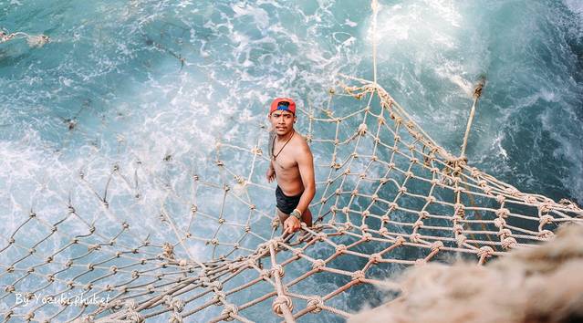 沿着木制楼梯爬上去,才能看到玛雅湾,算是小pp岛上的一处秘境。回头看看,原来已经爬那么高拉,这里的人相对海滩上稍微少一些,陡峭的岩石,茂密的树林,一切还是那么原始和自然。