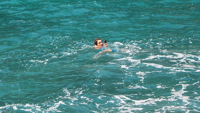 快艇上提供呼吸面罩和咬嘴,如果担心咬嘴不干净可以自己准备一个,不过据说都是全新的呢。救生衣也在船上,下水时一定要穿,即使会游泳,也建议穿,万一遇到海浪呢,万一体力不支呢。在快到达时,会中文的小哥会演示面罩的戴法和注意事项,要认真听啦。