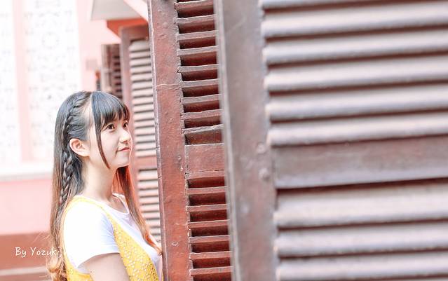 查龙寺:波西米亚蕾丝罩衫+牛仔短裤,简单的款式,在寺庙前不需要太亮丽浮夸。