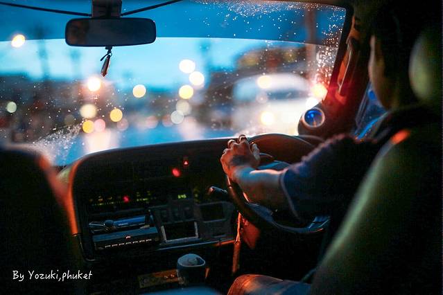 返程回到普吉岛的路上,下起了大暴雨,好在白天天气都很好,大家玩的精疲力尽。只不过坐在最后一排的人感受了一次“水帘洞”。