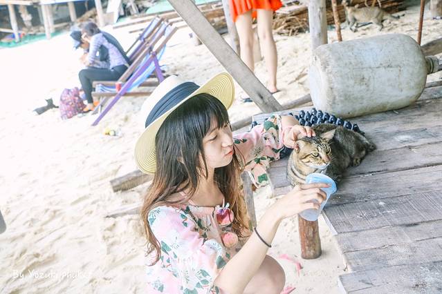 鸡蛋岛的海更漂亮,作为最终的一站,可以在这里租一把躺椅躺着看看海,或是和岛上的猫星人逗乐一番,这里会提供免费的水果和饮料,都是当地人现切的,暴晒下来一些冰凉的水果,确实能够将降温。