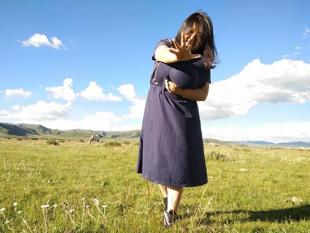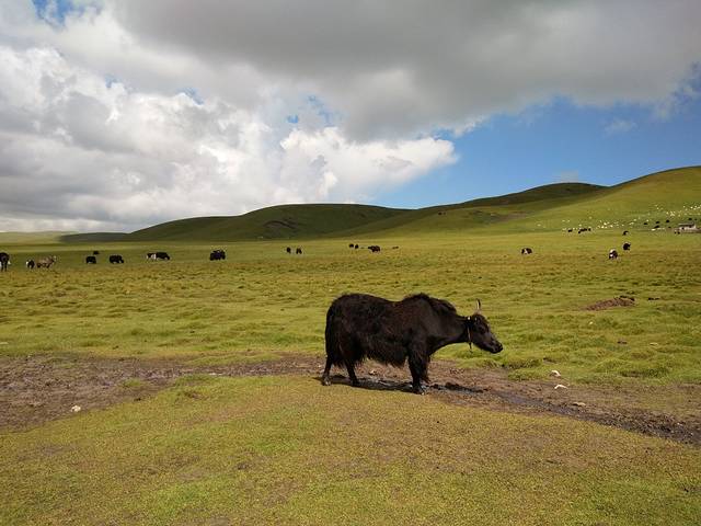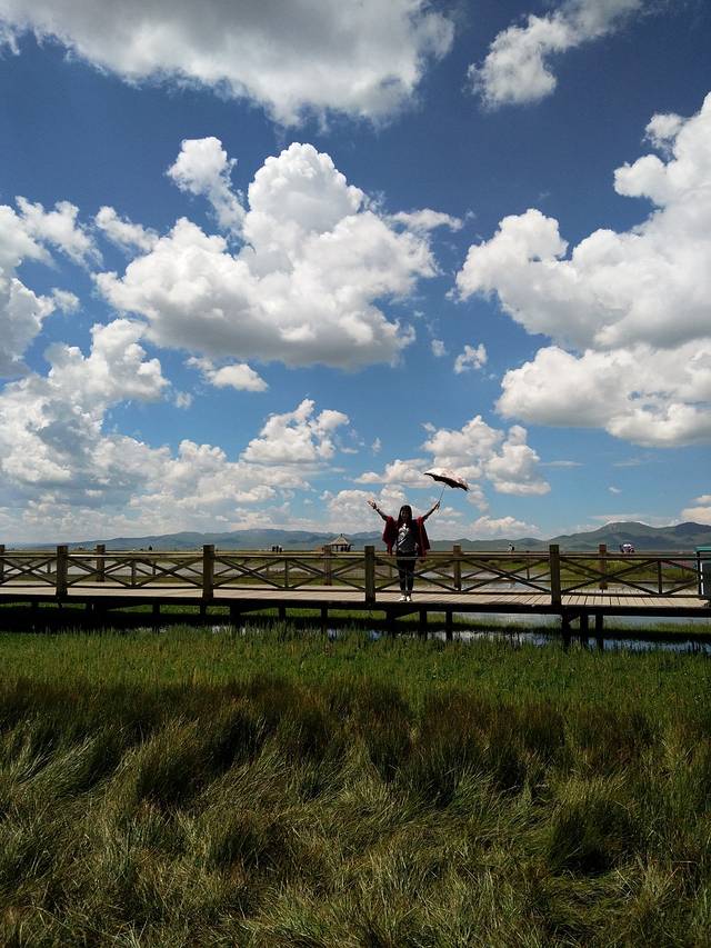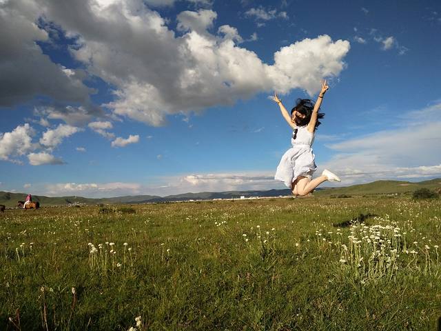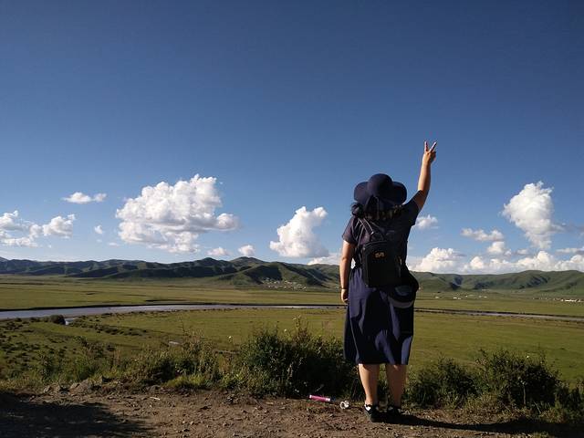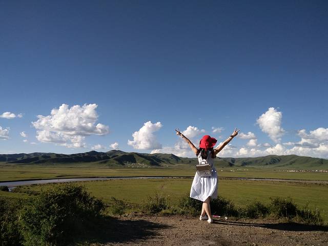 月亮湾下面的草原,没有什么人。人都在观景平台。哈哈,可以各种创作。因为我是去过红原的,所以这次没有高反,但是第一次去的,别走的太快,或者是跑跳这类的。注意高反哈,我第一次去的时候高反有点严重呢。