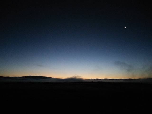 晚上我们回到月亮湾住的帐篷,太吵了,没怎么休息好。简直冷到爆,前一天还阳光明媚、短袖长衫。第二天夜晚就毛衣大衣包裹严实,早上起床还看见帐篷结了一层厚厚的冰,收帐篷的时候那叫一个冷。不过有喜有悲吧。早上的时候我们看到了日出,晚上的时候看到了满天星空。手机党,所以星空肯定是只能看,拍不到的。