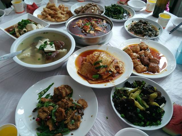 中午的午餐就在花湖那个餐饮一条街吃的,人也很多。建议大家在成都带两个西瓜。在那边去吃,那边水果较少。吃起来特别安逸。
