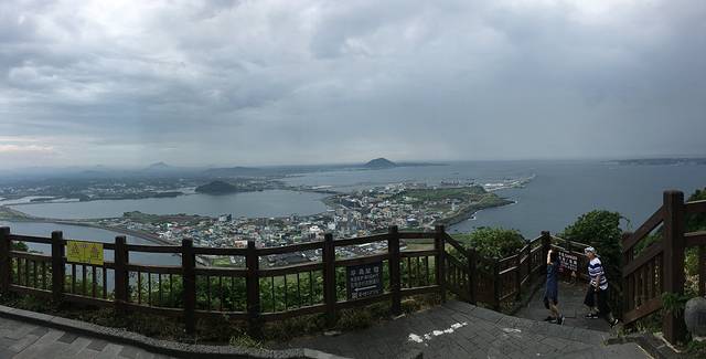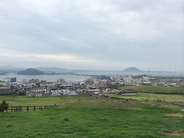 第二天是最舒服的,提前包车,十小时的那种随你安排。天气又不热,一直阴天偶尔小雨,幸好不是大太阳,不然天太热真够呛。我们今天安排的行程是:城邑民俗村、涉地可支、城山日出峰、牛岛。济州民俗村在城邑南边不远。后面三个景点比较集中,都能远看到,但是开车还是远的。这几个地方自由行坐公交感觉不太方便,建议几个人一起的包车绝对划算。也有公交到这些地方,想自由行的自己要作攻略了。本篇有提供其他公交路线。