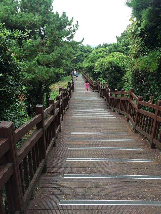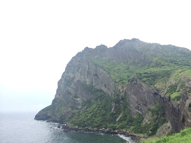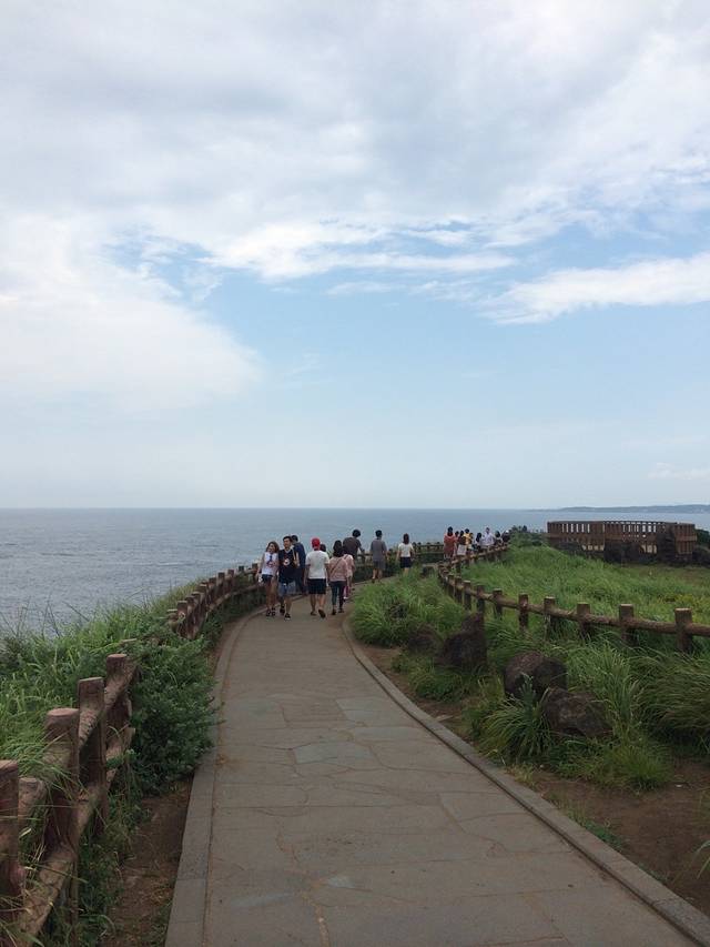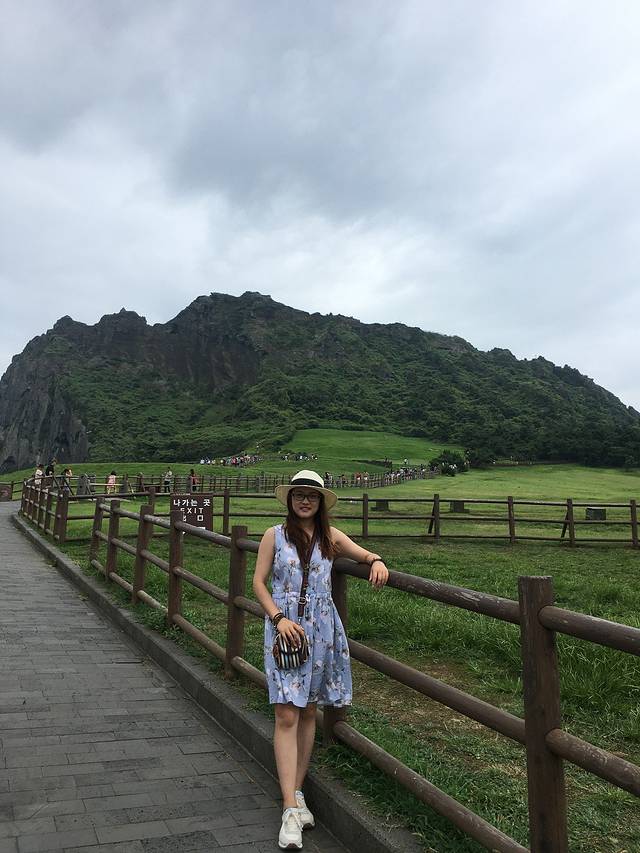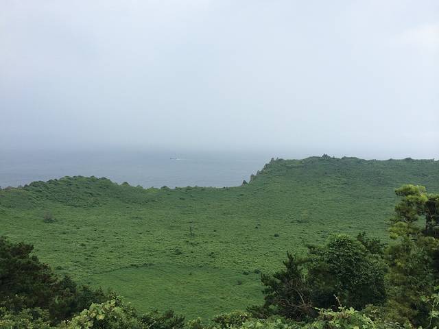 第三站,城山日出峰。也非常美,整个是火山喷发留下的,山顶是凹进去的,上去要爬一会儿山路,没多高。一路上拍了好多照片,到达山顶玩了一会开始下小雨,于是下山,路上有老外有中国人有韩国人,非常有意思,还碰到个大叔抱着个超级小萝莉,非常可爱,跟她打招呼,会一直盯着你。到山下下大了,躲了会,继续出发去牛岛。推荐指数五颗星。