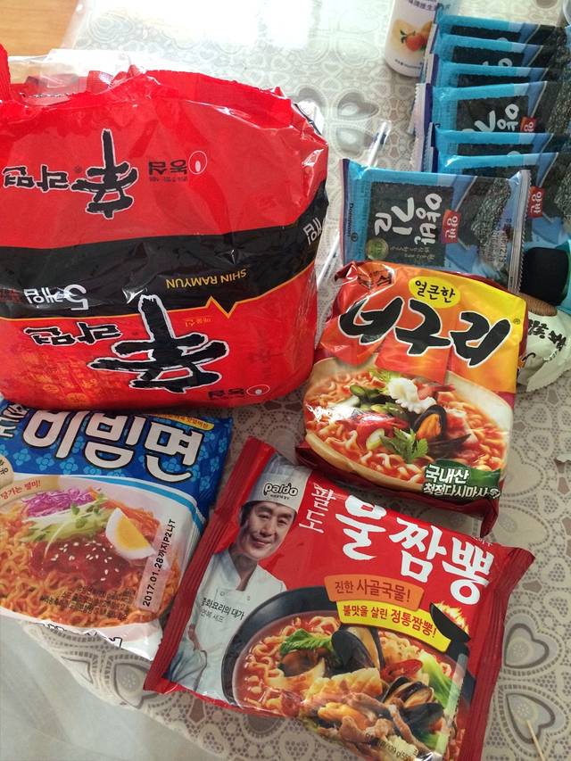 自己买回的泡面,回来煮超级好吃,尤其这种粗面的,像手擀面样的,qq滑滑不糊,一点不像方面便,如下~除此之外还可以从韩国带黄油薯片、海苔、泡菜、辣椒酱、拌饭酱、咖啡、年糕酱等当地热门产品~