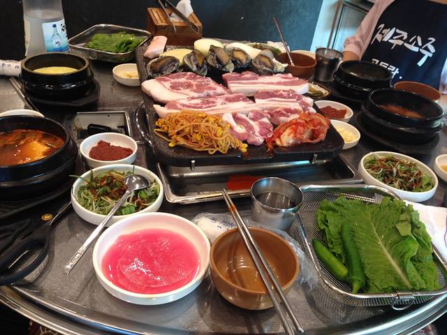 海鲜套餐,烤肉等。米饭超级好吃,价格比国内贵。餐具喜欢,西归浦每日市场内购入两套。