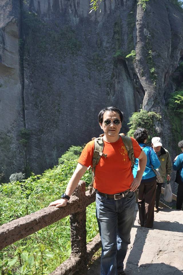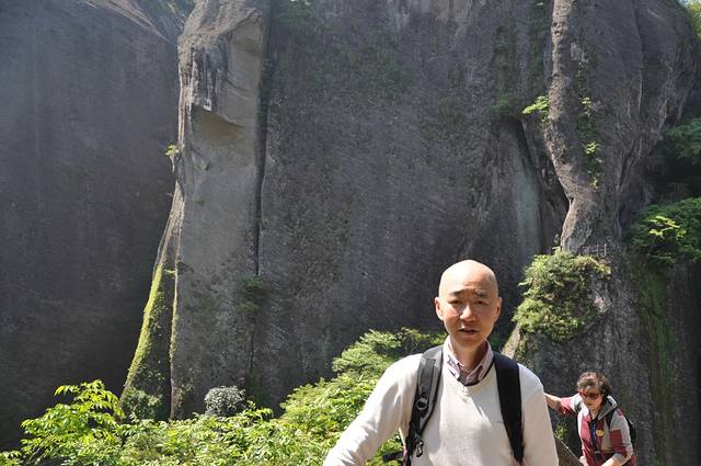 此处已过半山腰,天游峰正面上山的道路非常陡峭,路宽可以两个人通过,所以基本上都是从正面上山,从背面下山,背面的风景不能和正面比。偶尔也有爬到一半爬不动了,退下来的,因为逆行被众人指责。