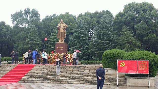 从衡山到花明楼,本应走037县道转岳临高速。考虑县道是30多公里盘山路,且天气阴沉云雾大,遂选择走107国道转岳临高速,中午11点半才到花明楼。花明楼位于宁乡县的东南部,是一美丽的江南小镇,刘少奇同志的故里。花明楼景区包括刘少奇同志故居、铜像广场、纪念绾、花明园等景点。是湖南省重要的革命纪念地和旅游观光区。走近景区入口,一座牌楼耸立,上书“刘少奇故里”五个红色大字。进大门拾级而上,便到铜像广场。广场四周松柏环绕,郁郁葱葱,庄严肃穆,环境优雅。刘少奇同志铜像巍然耸立在中央。由于时间关系,我们瞻仰了铜像后,便离开景区前往韶山。