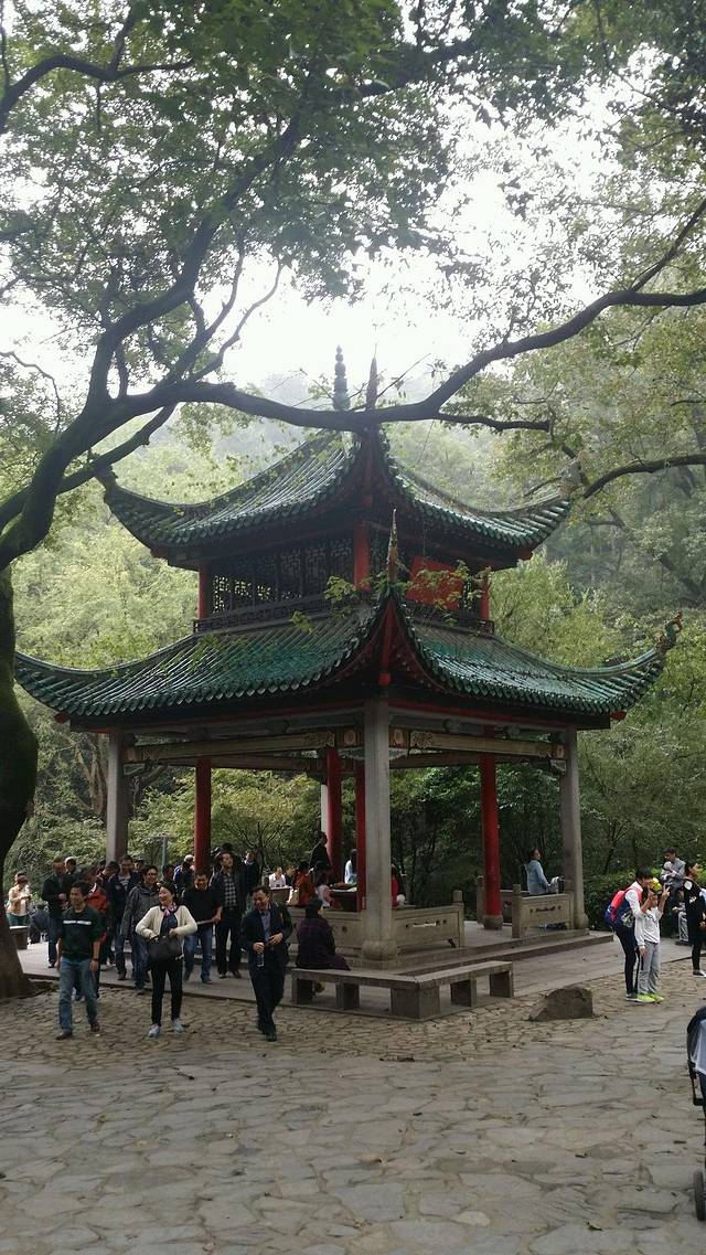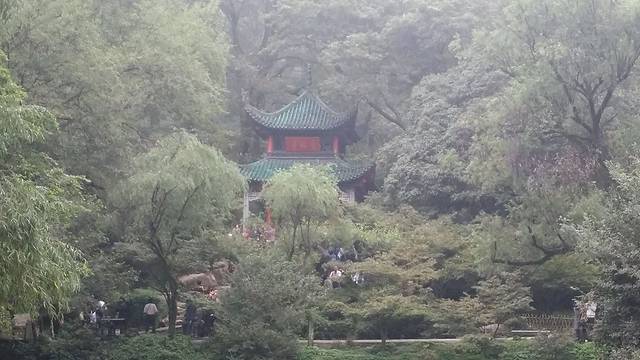 从酒店出发,过桔子洲大桥,10多分钟就到岳麓山公园东大门。岳麓山在长沙西郊,海拔300多米,山不高,但山体庞大,分前山和后山,景点多在前山。上下山有索道和游览车供游人选择。这里会萃湘楚文化精华,名胜古迹众多,现为国家5A景区,免费游览。是长沙人休闲和外地人观光首选之地。我们乘游览车直到山顶,山上雾气蒙胧,沿公路前行经过观光长廊,什么也看不到。只有改走小路下山,沿路瞻仰黄兴墓、蔡锷墓,来到著名景点爱晚亭。爱晚亭建于1792年,原名红叶亭,与北京的陶然亭、杭州的湖心亭、安徽滁州的醉翁亭并称为中国四大名亭。这里古木参天,林荫蔽日,爱晚亭掩映在葱翠林木之中,景色极隹。继续往下走300多米,山脚下就是岳麓书院。岳麓书院是我国古代著名的四大学府之一,有上千年的历史。我们在这里乘交通车出景区南门,返回到东大门。