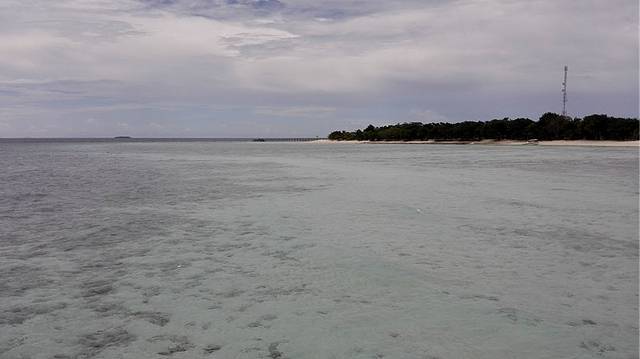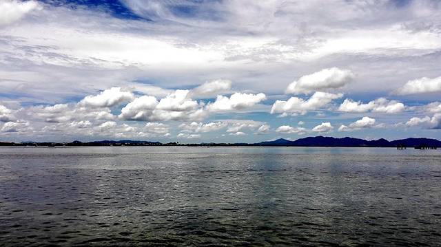上岛的是双体船,很平稳,一点都不颠簸。离开仙本那码头没多远,有一段海域非常浅,甚至有人站水里抓鱼或捞海藻,水只是到膝盖位置。到邦邦岛的路途中,能看到几座小海岛。此刻海水的颜色是深蓝色,真有点担心网图上美丽的海水颜色不出现呀。