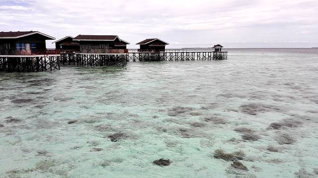 新加马达水屋与卡帕莱水屋一样,是建立在礁石上的。优点是度假村每天安排了免费跳岛游;缺点是度假村房间设施比较老旧,且不提供斗湖机场接送机,只提供往返海岛度假村与仙本那新加马达集合点之间的交通船。