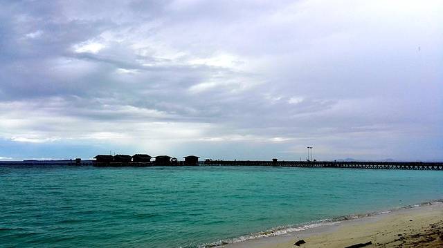 坐上快艇,很快接近仙本那码头,那个浅滩的位置,我们看到了海藻随水流舞蹈,黄色和白色的海星静静地待在水底,透明的水面反射着阳光,仿佛有吸引力拉着你去探索,为什么此处的海星与邦邦岛颜色不同。仙本那虽然是码头,可是没有海边惯有的海腥味,水面清澈,没有一丝浑浊感。这里不得不赞一下邦邦岛龙珠度假村,我们走上仙本那码头,朋友说“哎呀,我的充电线忘在度假村了,只能到吉隆坡去买了。”没有一个人会认为能找回来。说完不过5分钟,度假村的工作人员拿着一堆充电线问是不是我们朋友的,这速度,这服务,太出乎意料了。
