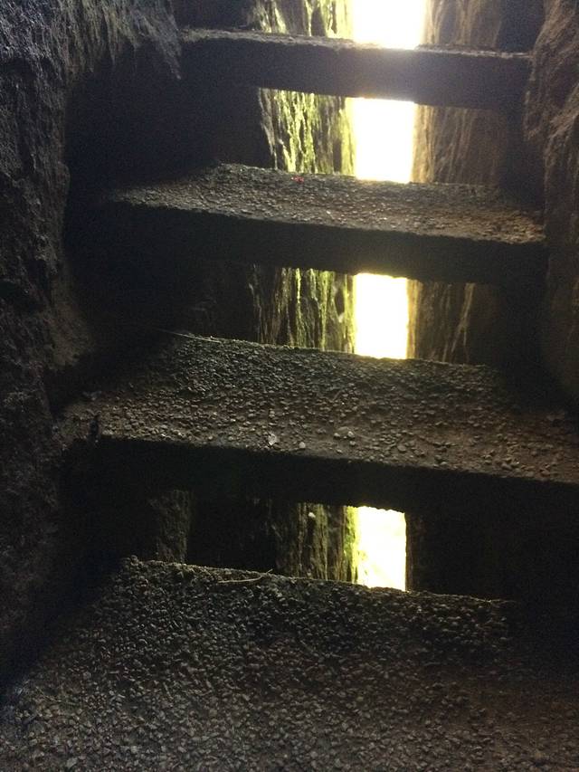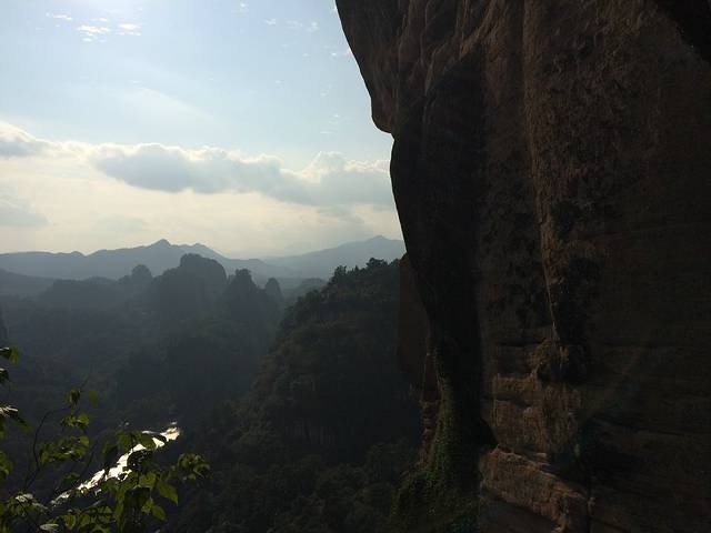 在快上顶的时候遇到了热心的父子两,也就是前文提到的熟悉地形的大叔,带我们走了另一条下山路,上山的时候我们选择了路线长一点看似平缓的路,下山走了另一条路,另一条一线天,有条山洞里的小路是凿在洞边的,须侧身横着走,光线黑是黑的,不过太好玩啦。还有一个岔口幸好大叔在等我们告诉我们可以不走回头路,不然我们就傻乎乎抖霍霍走下山回头路了,实在是太感谢了~
