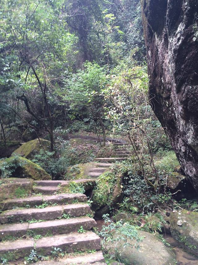 那天走了四万步,真是又被自己感动到了前一天走的是南门,所以这一天就走北门,刚入北门没多久我就觉得北门的沿途风光比较赞,比起溪景我更喜欢置身于山林间的感觉。水帘洞是一个酱油景点,我怎么觉得去国内哪里旅游都有种今年缺水的感觉呢,大家要环保呀不过不走回头路,水帘洞走完之后就是最美好的岩骨花香步道啦~武夷山有三条步道,这一条是最美的(当天遇到的超级熟悉地形来过N回的大叔说的),前一天走的是九曲湾步道,还有一条绿野仙踪在虎啸岩那边可惜来不及去了,现在回想起来觉得当时走得太快了有点可惜。