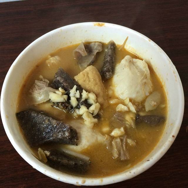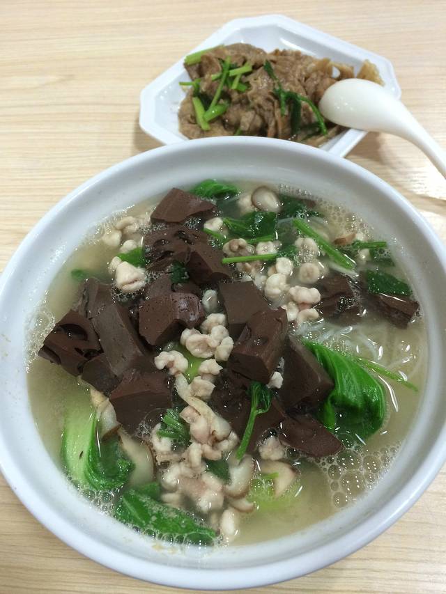 五年没来,感觉很多东西的物价都翻倍了,这家还好,以前来吃10块钱吧,现在有两种选择:沙茶面+罗汉肉(原来就是美好的猪肝沿)+鸭血+包心鱼丸+豆干14块,基本我要吃的都在里面了,再加猪肠20块,自己要了个14块沙茶面加了份米血15块,相对于乌糖的华丽价格,这里太亲民啦~