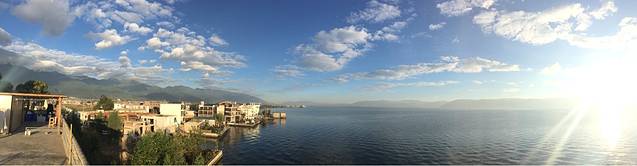 自从心花路放上看到洱海的风景,便心心念念洱海这颗彩云之南的明珠。从飞机上隔着朵朵白云往下看去,高原特有的阳光直射,将洱海渲染成一片金色。回头看着坐在我身边的女孩儿,满脑袋只想着,爱情不在洱海边,她,就在我身边。